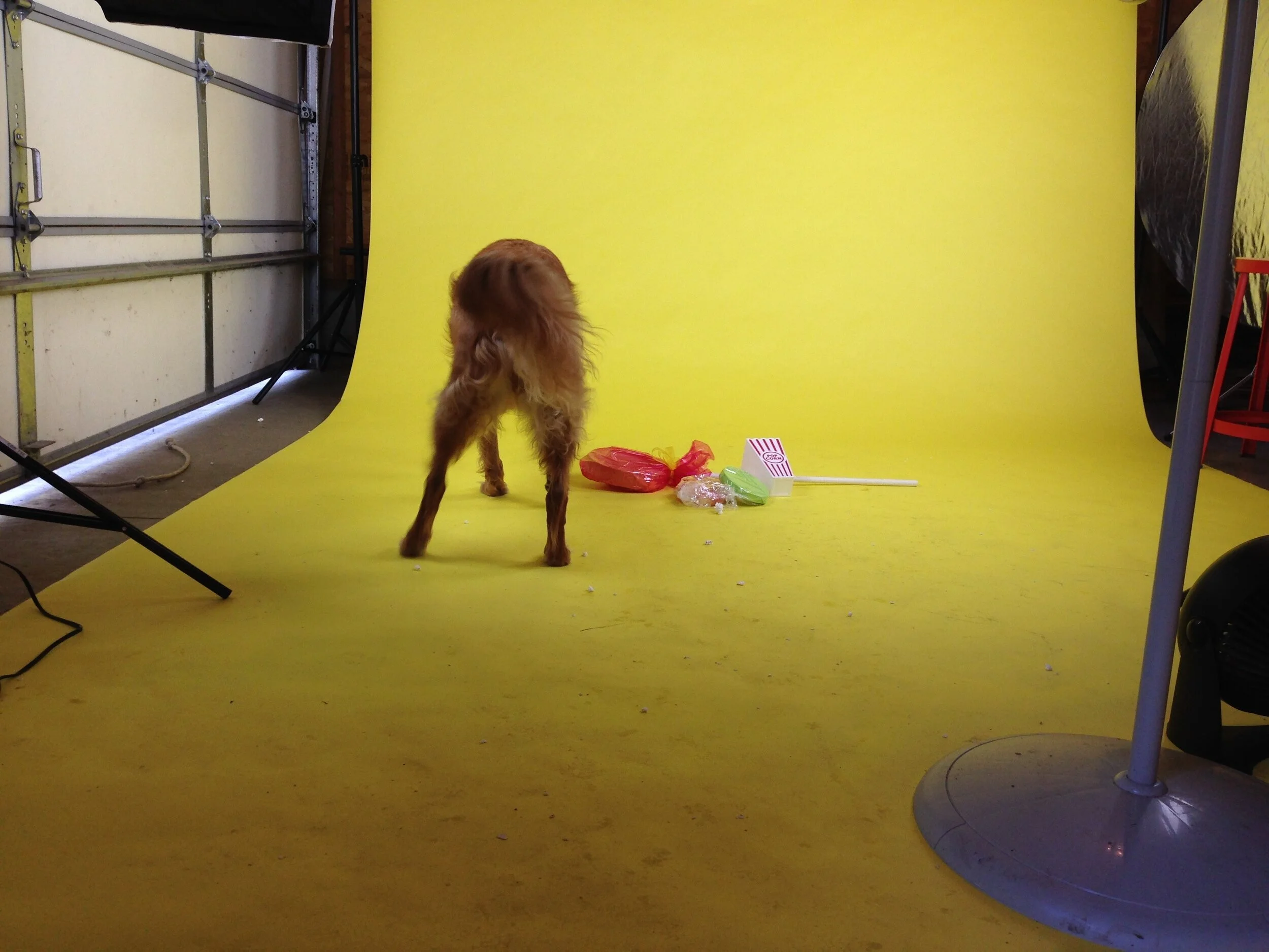 ALLIE PICKING UP THE EXTRA POPCORN ON THE BACKDROP FLOOR!