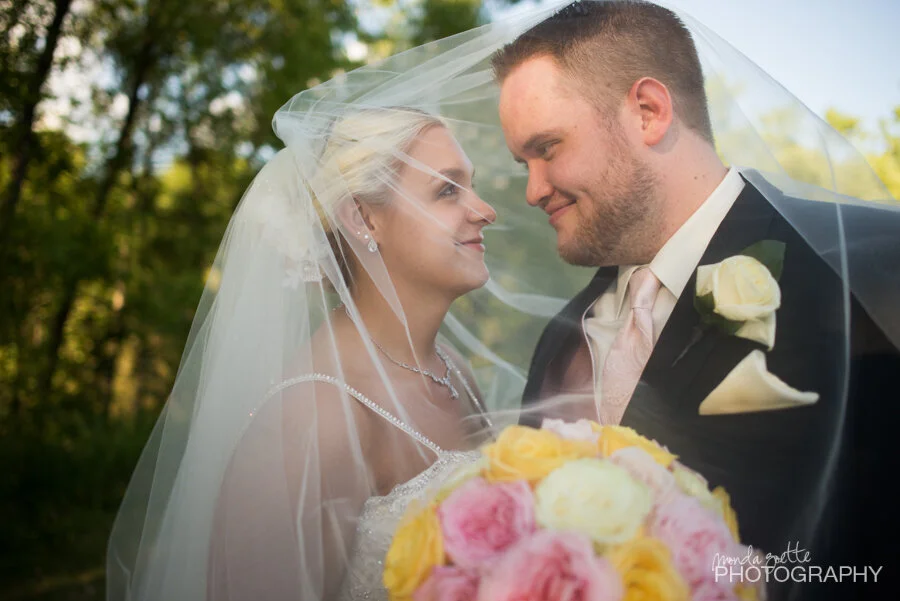 Not only was Amanda's bridal gown stunning, she had a long flowing veil, which was the perfect length for us try some fun and creative shots at the Eagan Community Center Park! Dave also was looking pretty slick in his tuxedo!