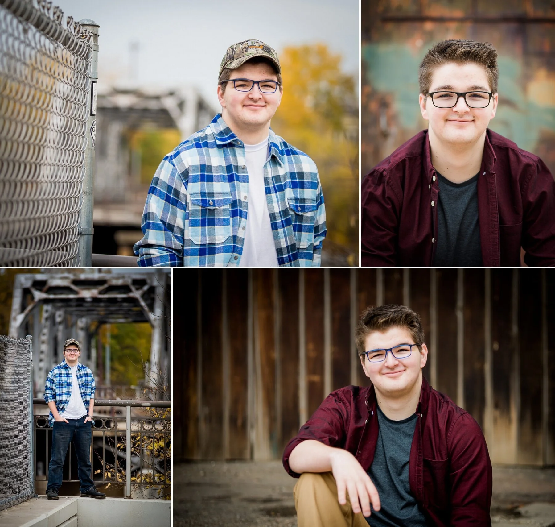 Hunter knew exactly what he wanted for his senior photos. For his session, we did a fall shoot, and he wanted "urban" and "outdoor" images. His mom and dad came along and we did more of a "car-hop" session - which means dad drives, and on the way, if we see a spot we like, we hop out and snap a few pics, and then back in the car we go! (I just made that term up as it relates to this session!)