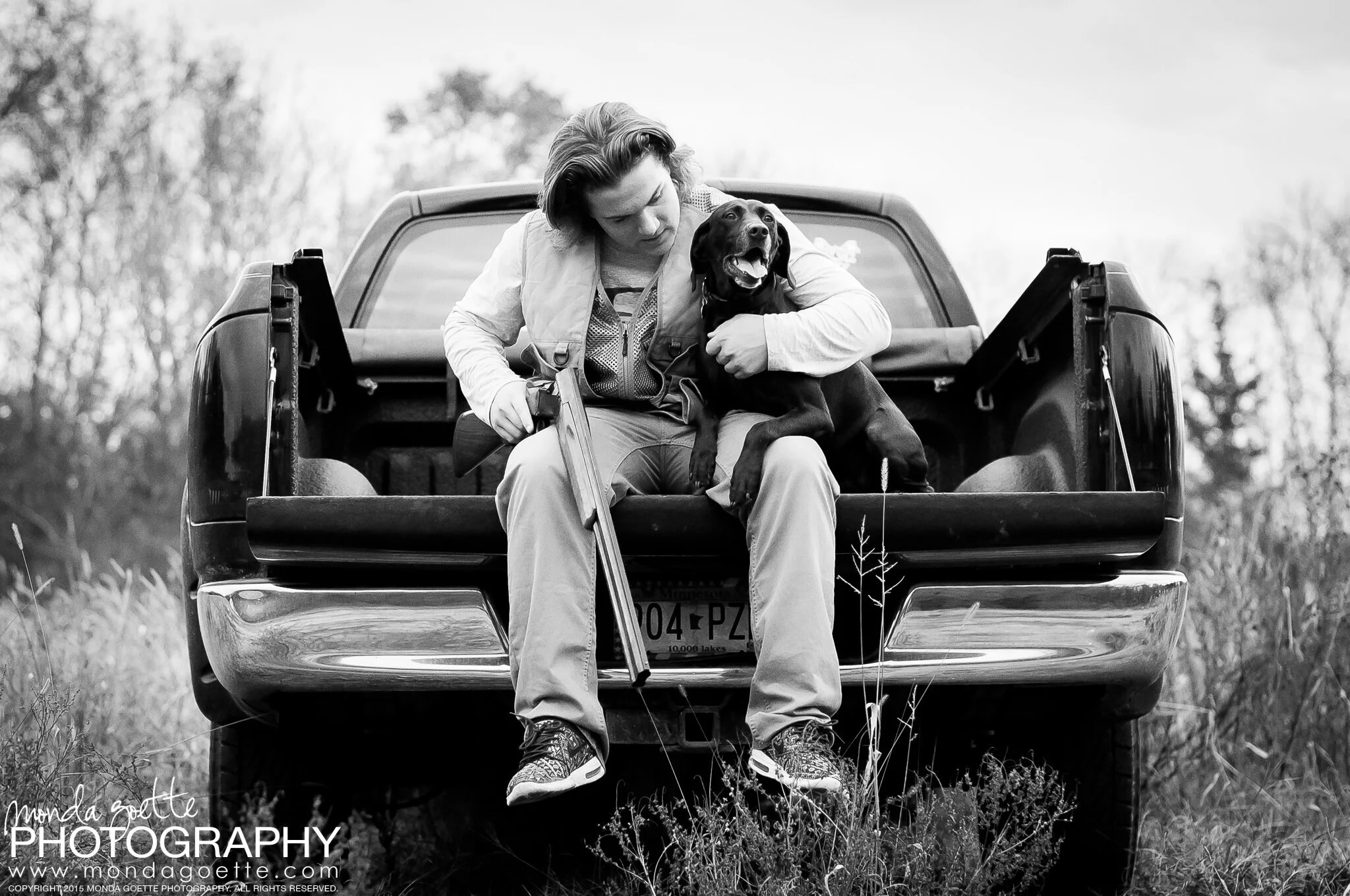 Luci was in hunting mode, hoping to flush a bird as we walked along the pathway. Hunting is a pasttime that Jack shared with his dad. I was so glad that Jack was willing to do this part of his senior session to commemorate his dad and help Jack look back on these moments and know that his dad is always with him and is proud of him even though he is no longer here. Jack, I'm not sure if you noticed that day or not, but as you and Luci were getting ready to sit on the tailgate for a photo, a single sunbeam popped out of the sky for just a split second. In my heart, I know that was your dad looking down on you!