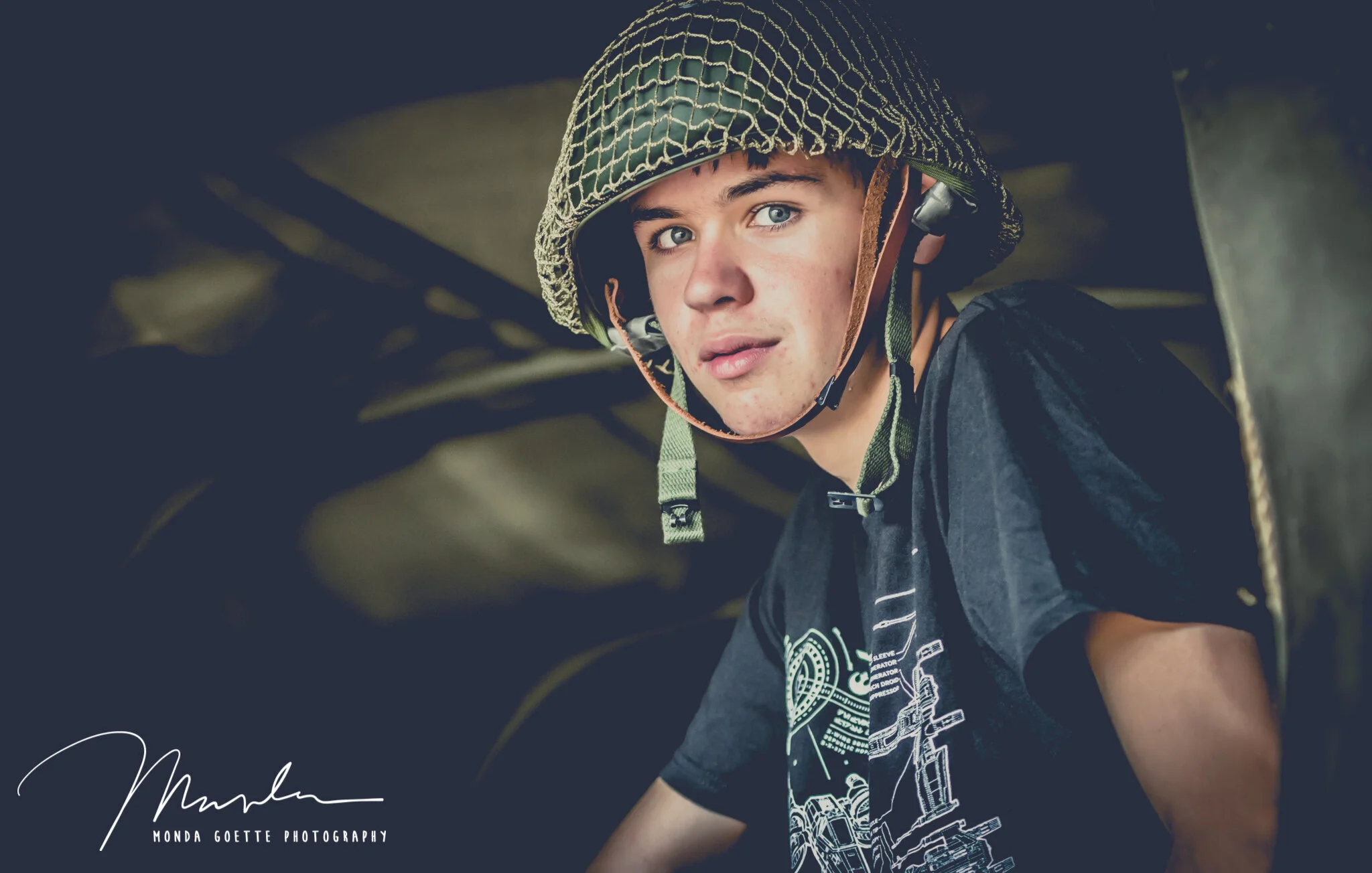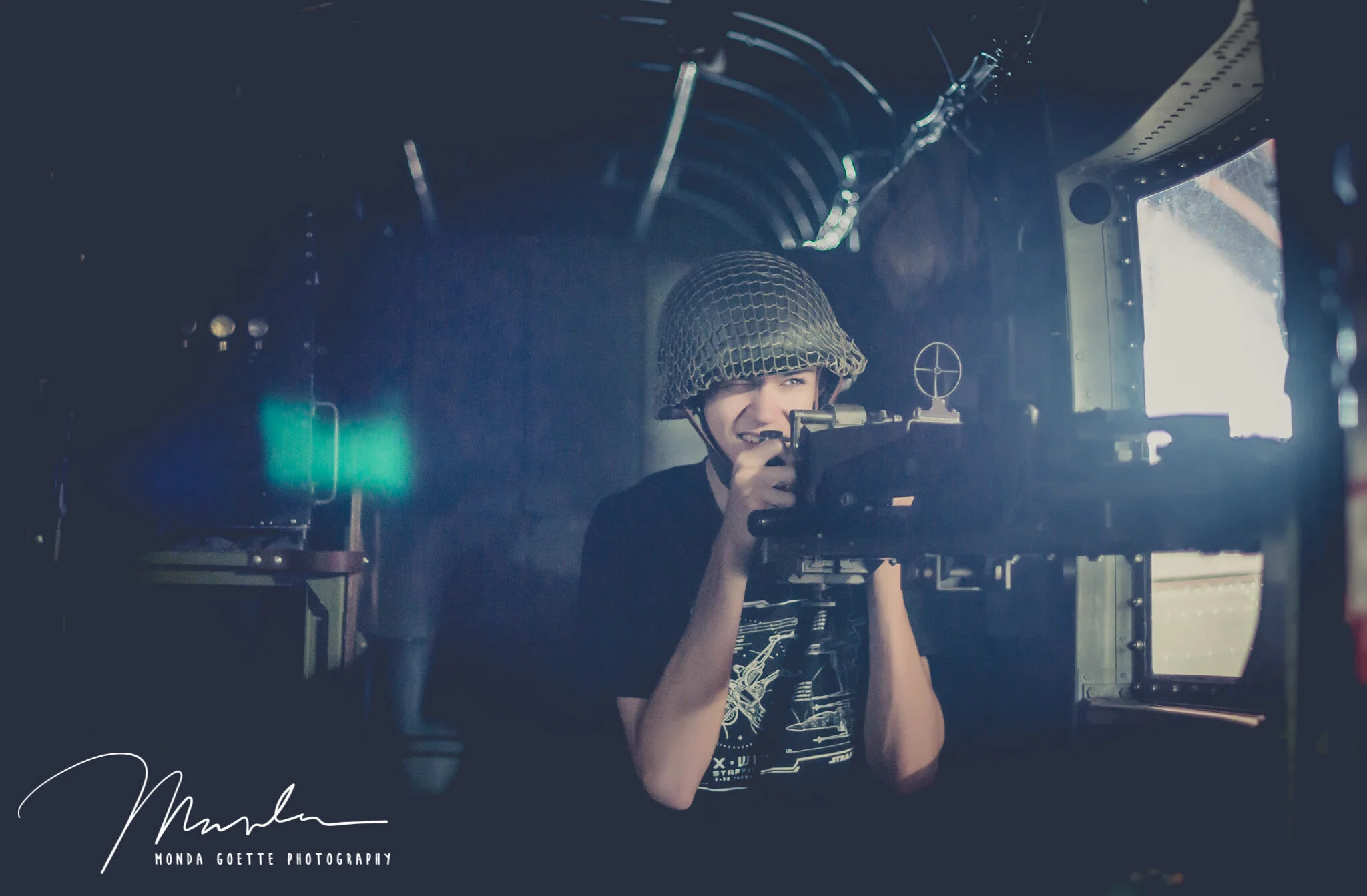 Lucas brought his collector WWII military helmet-and even wore it in a few images! It was a really fun session to be able to go into these commemorative bomber planes to take photographs.