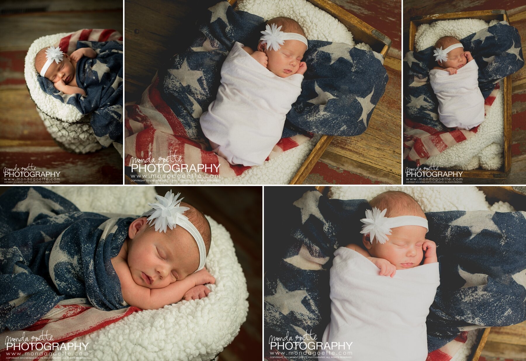 Baby, you're a firework! Like a porcelan doll, Miss Sophia lay snug in an american flag vintage-printed shall.