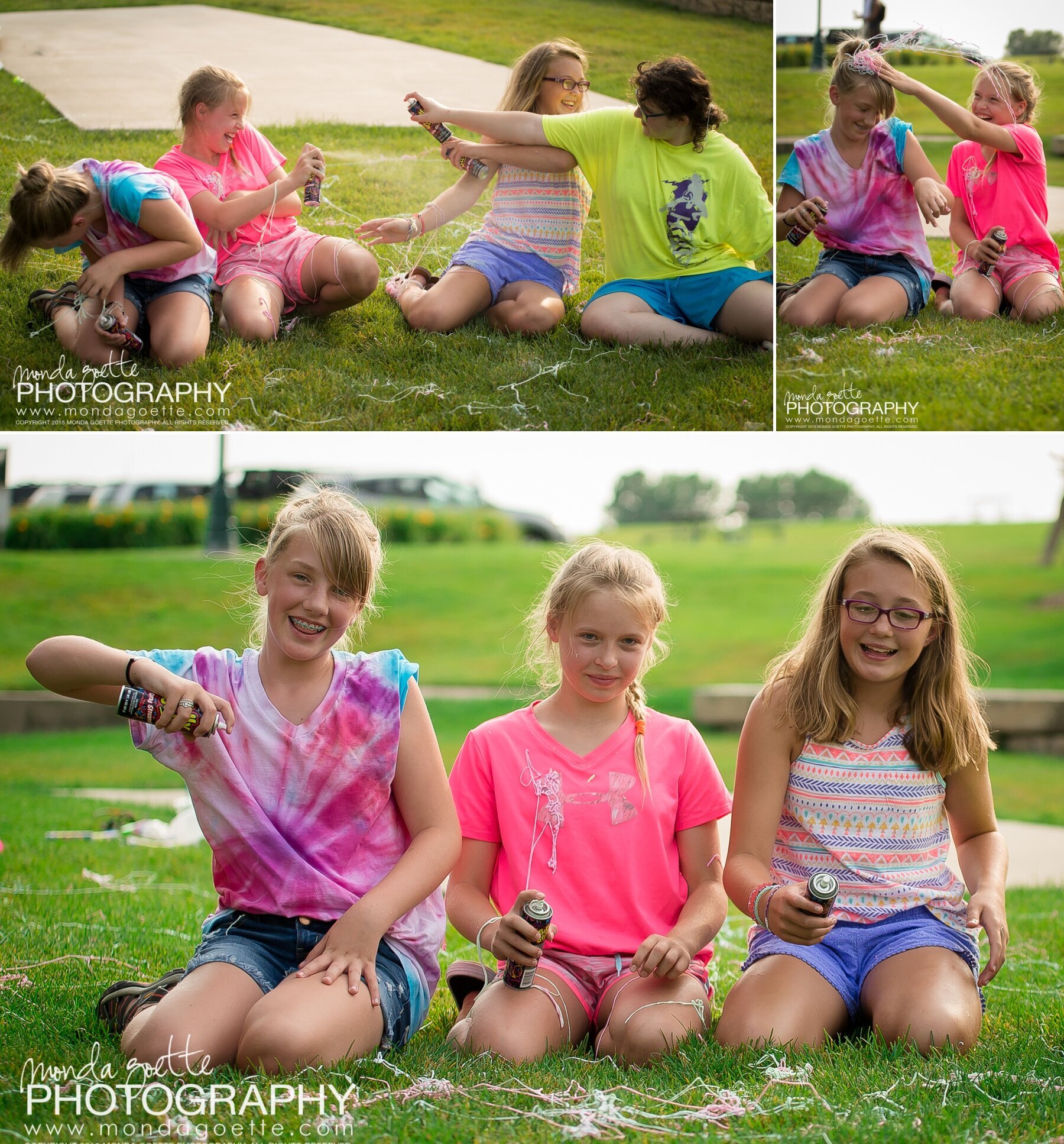 This was my first go at doing a photo session with Silly String. It was kind of messy, but it was so great to see these girls have genuine smiles on their faces, even a little competitive to see who could "string" their new friend the fastest! (For the record, we did bring a garbage bag and cleaned up afterwards. Must take care of our public parks when we make a mess!)